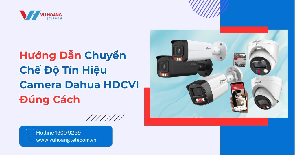 Chuyển chế độ tín hiệu camera Dahua HDCVI là thao tác đổi định dạng video giữa CVI, TVI, AHD và CVBS. Thực hiện qua nút vật lý trên thân camera (nhấn giữ ~10 giây) hoặc qua menu PTZ trên đầu ghi Dahua. Đúng chế độ thì camera mới lên hình – sai chế độ là nguyên nhân số 1 khiến màn hình trắng. Xem thêm chi tiết bài viết tại Vũ Hoàng Telecom chia sẻ – hướng dẫn kỹ thuật camera Dahua, lắp đặt đầu ghi và khắc phục lỗi tín hiệu thực tế.