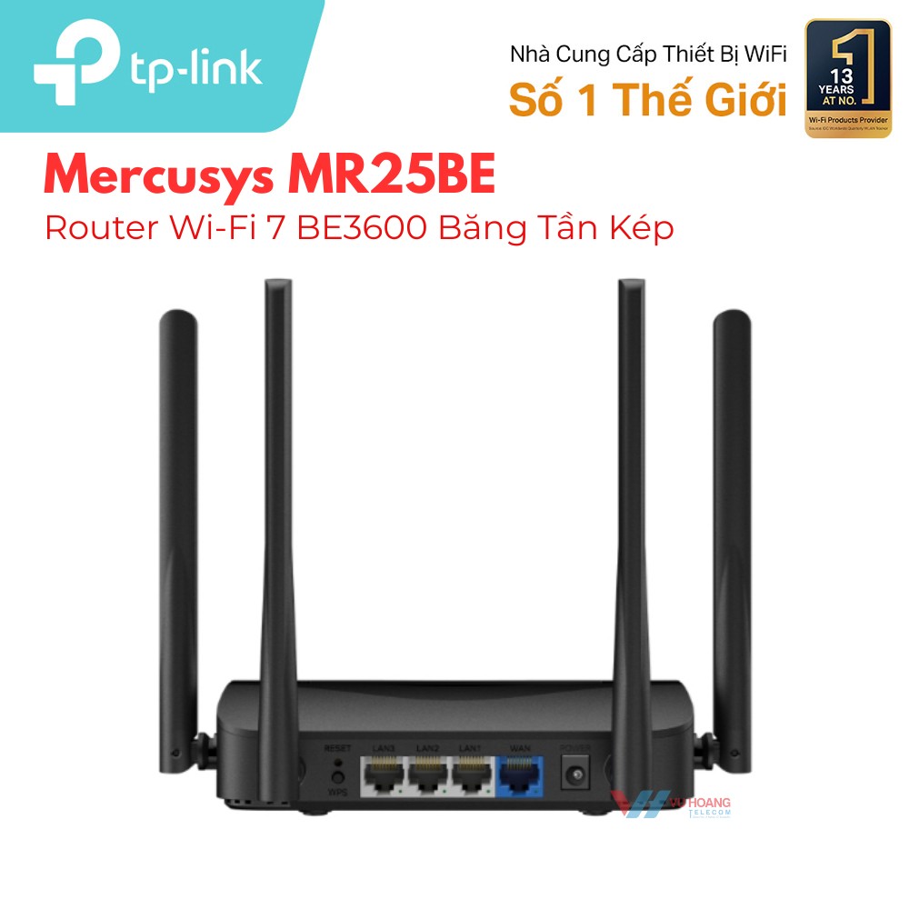 Router WiFi 7 Mercusys MR25BE BE3600 là lựa chọn thực tế cho gia đình và văn phòng nhỏ muốn đón đầu công nghệ mạng thế hệ mới với chi phí hợp lý. Tốc độ 3.600Mbps, MLO giảm độ trễ và tương thích ngược toàn diện giúp nâng cấp mượt mà, không phiền phức. Liên hệ ngay để được tư vấn và nhận báo giá tốt nhất hôm nay!