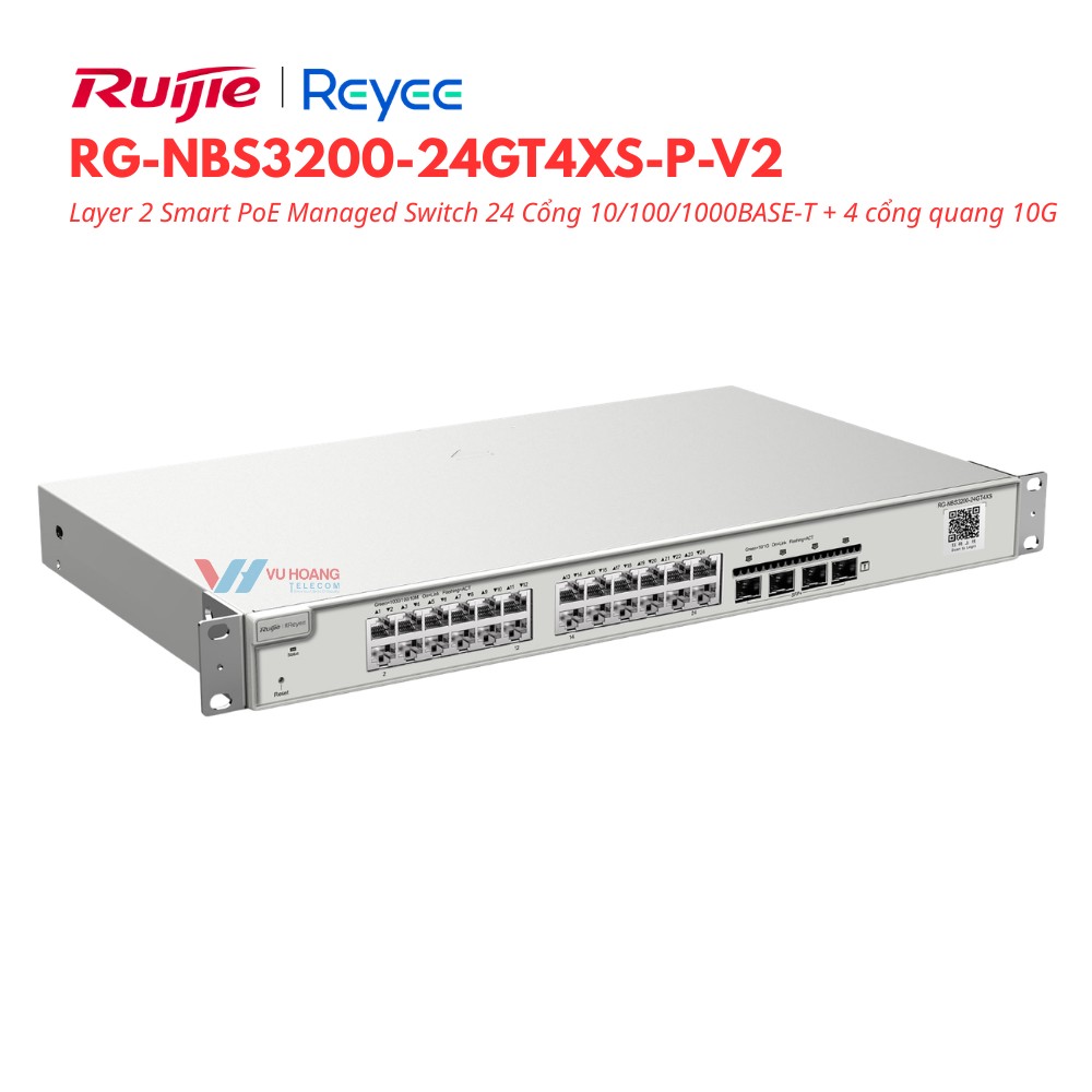 Smart PoE Managed Switch Reyee RG-NBS3200-24GT4XS-P-V2 là lựa chọn hàng đầu cho hệ thống mạng doanh nghiệp cần PoE+ dồi dào, uplink 10G và quản lý chuyên nghiệp. Hiệu năng 128Gbps, bảo mật đa lớp, rack-mount và Ruijie Cloud tối ưu chi phí vận hành rõ rệt. Liên hệ ngay HOTLINE 1900 9259 để được hỗ trợ tốt nhất. Tham khảo thêm hình ảnh tại Facebook Vuhoangtelecom nhé.